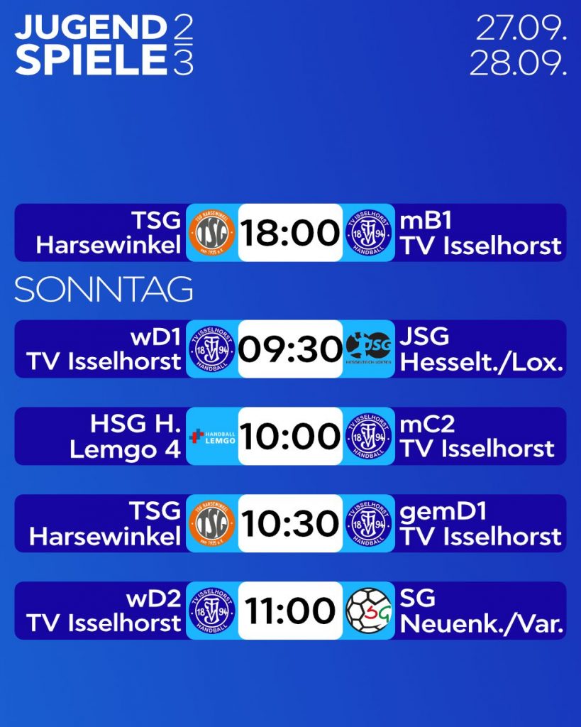 Die männliche D-Jugend des TV Isselhorst hat eine herausragende Saison gespielt und sich als Tabellenführer für die Westfalenteilmeisterschaft 2025 qualifiziert! Am ersten Aprilwochenende tritt das Team beim prestigeträchtigen Turnier gegen die stärksten Mannschaften aus Westfalen an. Die Gegner sind keine Unbekannten: JSG LIT 1912 (Ausrichter), TuS 97 Bielefeld/Jöllenbeck, HSG Handball Lemgo und TV Emsdetten 1898. Die jungen Handballer freuen sich auf spannende Partien und wollen ihr Können unter Beweis stellen.