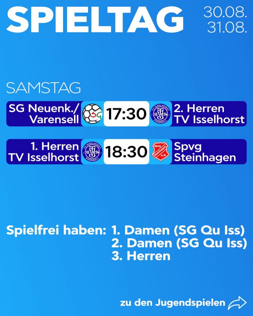 Tipp: Wer beim Derby der 1. Herren nicht dabei sein kann, kann das ganze im Livestream von Harzfrei – der Handball Podcast verfolgen. Der Link dazu lautet: https://sporteurope.tv/spvgsteinhagen/harzfrei-live-derby-kracher-steinhagen-vs-isselhorst